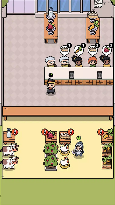 As your farm grows, so do your ambitions! Level up by reinvesting your earnings into expanding your operations. Hire skilled chefs and efficient waiters to establish your farm's brand and reputation in the market.
