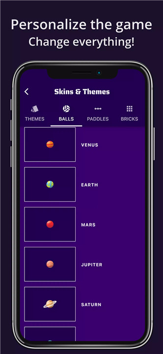Customize your game experience with over 20 themes and 50+ skins for balls, paddles, and bricks. Choose from popular themes like Starry Night or Merry Christmas and select skins such as basketballs, planets, or custom patterns to personalize your gaming experience.