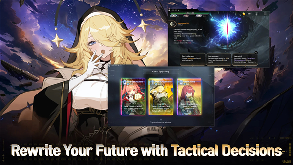 • Your path is unique; navigate branching choices, wield unique cards, and develop a "Save Data" profile molded by your journey.
