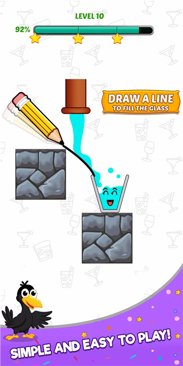 Welcome to Happy Crow - Fill the Glass, a delightful puzzle game developed by Kid Game Studio. Join the adorable crow on a quest to fill glasses with delicious liquid. Use your wit, strategy, and physics-based skills to overcome obstacles, avoid traps, and pour the liquid into the glasses in this charming and challenging puzzle adventure.