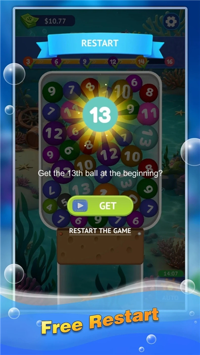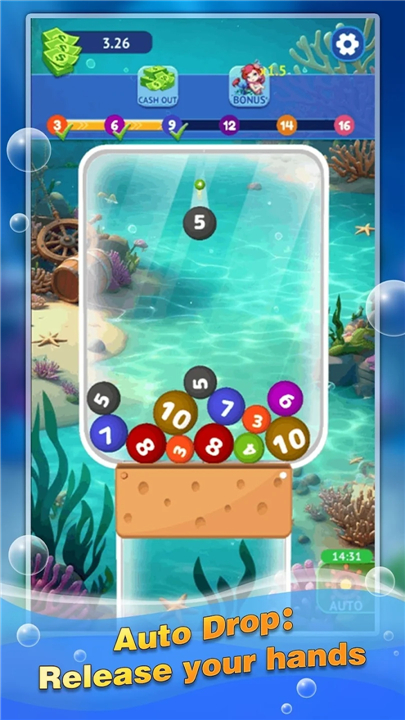 • Players control vibrant 3D colored balls, each representing a numerical value, within a captivating deep-sea world.