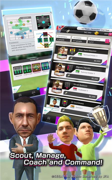 Scout and manage your team in SEGA’s ultimate soccer simulation game! Download the latest version of SEGA Pocket Club Manager to enjoy new features and updates immediately!