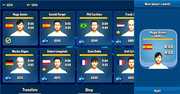 • Multiple tournaments: Champ Cup, America Cup, Euro Cup, World Cup, League Cup