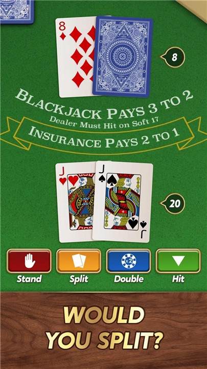 • Authentic Casino Feel – Every hand is dealt from up to 8 shuffled decks,