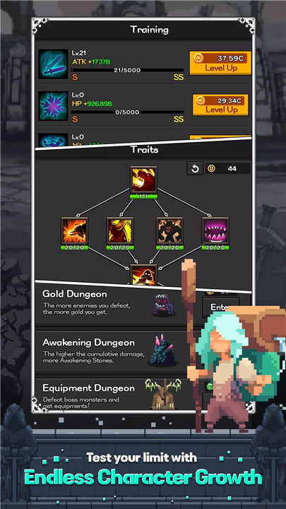 With a wealth of monsters to fight, dungeons to explore, and treasures to collect, Pixel Hunter Idle offers hours of content to keep you engaged. The game constantly provides new areas to explore, quests to complete, and items to discover. The stunning pixel graphics enhance the experience, making each battle and adventure visually captivating.