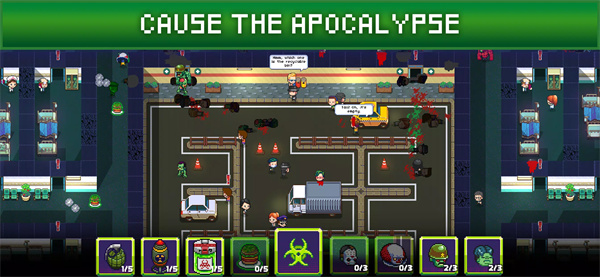 Use the environment to help your zombies reach every last human. Open doors, blow up walls, and earn extra rewards for your lab.