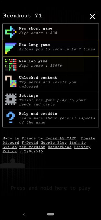 Vertical roguelike brick breaker : catch coins, level up and pick upgrades. Download the latest version of Breakout 71 - Open source game to enjoy new features and updates immediately!