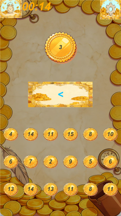 A: Every coin on the screen displays a specific number, and you must compare these numbers against a target threshold provided by the game. For example, you might be asked to find only those coins with values that are either greater than or less than a certain number.