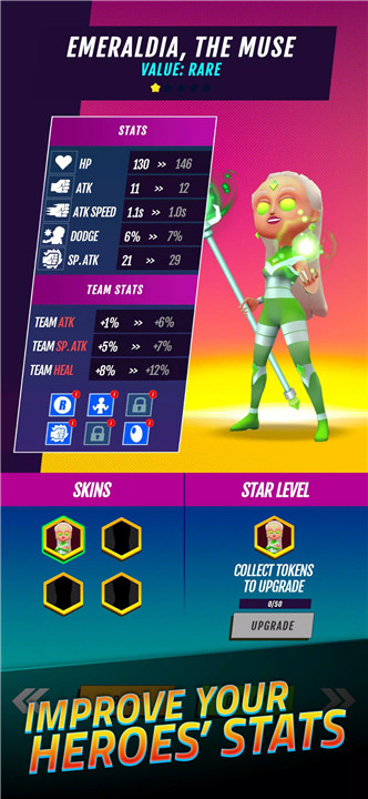 Even when you're not actively playing, your heroes never rest in their quest for justice. Take advantage from the idle progression system that allows your team to continue fighting and leveling up, accumulating resources and experience over time. Return to the game to find your heroes stronger and ready to face tougher foes!