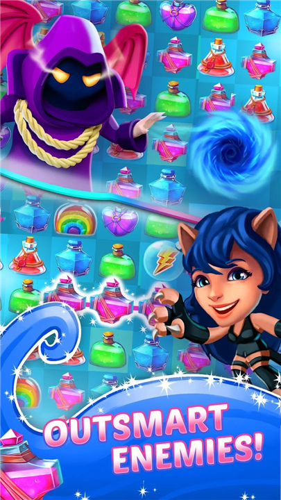 • Rather than simply swapping adjacent tiles, players must strategically link potions and magical ingredients to brew success.