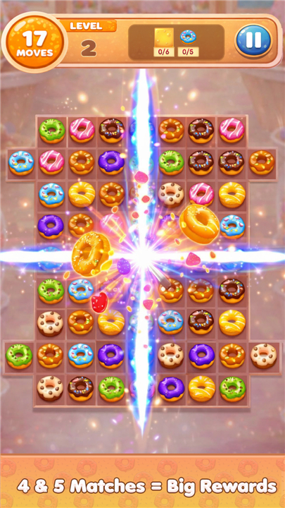 A: Playing the game is simple and intuitive. Your main objective is to match three or more donuts of the same type to clear them from the board. The easy-to-understand mechanics allow anyone to jump right in, regardless of previous gaming experience.