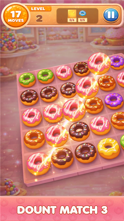 • Players are tasked with matching three or more donuts of the same type to clear them from the board.