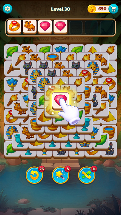 A: The gameplay revolves around matching identical tiles to clear them from the board. As you successfully match these tiles, you will gather legendary relics and unlock sealed chambers that lead you deeper into the heart of the pyramid. The mechanics are designed to be intuitive, allowing you to focus on the tranquil flow of the puzzle rather than complex controls.