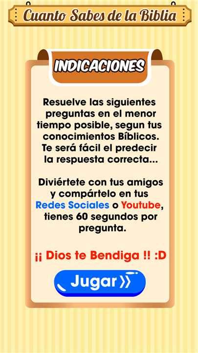 It is a Bible Game of questions and answers, to share with the Family Download the latest version of Cuanto Sabes de la Biblia to enjoy new features and updates immediately!