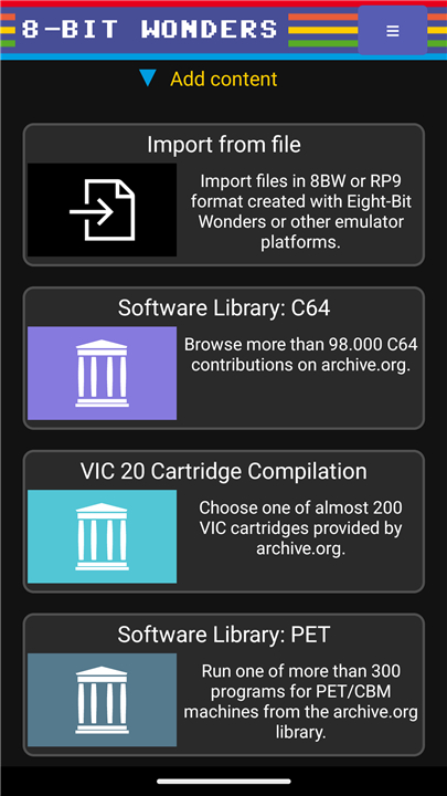• 8-Bit Wonders is a nostalgic yet modern application designed for fans of retro gaming and computing.