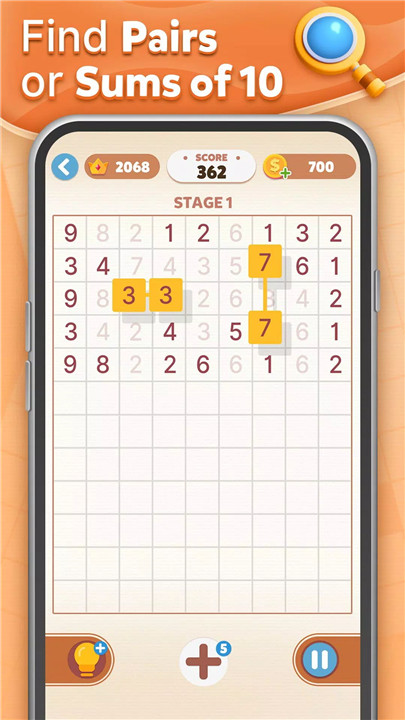 - Find pairs with the same value or a sum of 10.