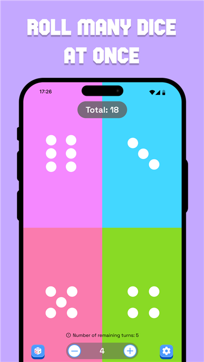 • Select how many dice to roll at once, from a single die to multiple dice.