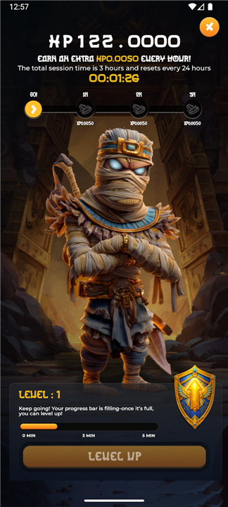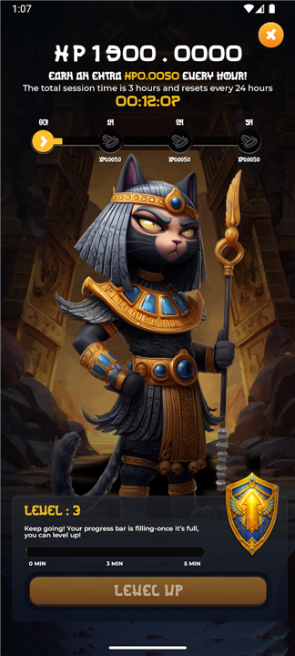 • A prominent Level Up button becomes active once the current XP requirements are met, putting the power of growth in your hands.
