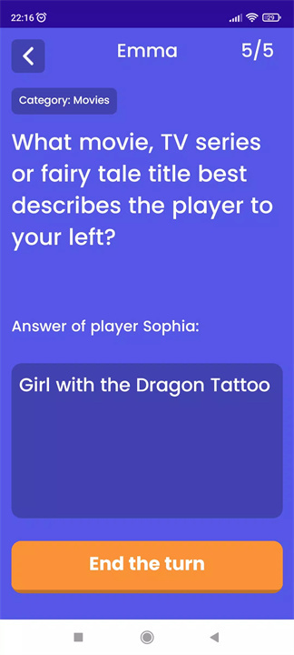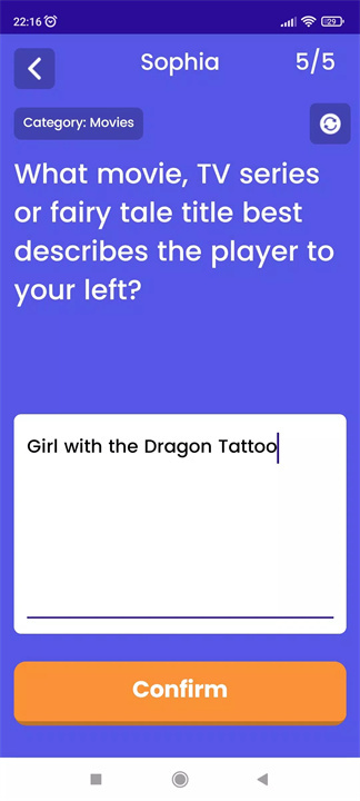 Phase 2: The phone is handed to the next player, who reads the question and the previous answer. This player can either keep the original answer or change it.