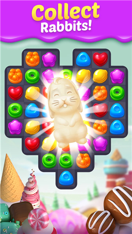 Candy Smash Mania: Match 3 Pop is a puzzle match-3 game with exquisite graphics and classic gameplay. Enter the game and experience the sweet candy elimination gameplay. The gameplay is simple, slide to match and eliminate three or more identical candies, and collect black and white kittens, bees and rabbits to help you complete the levels.