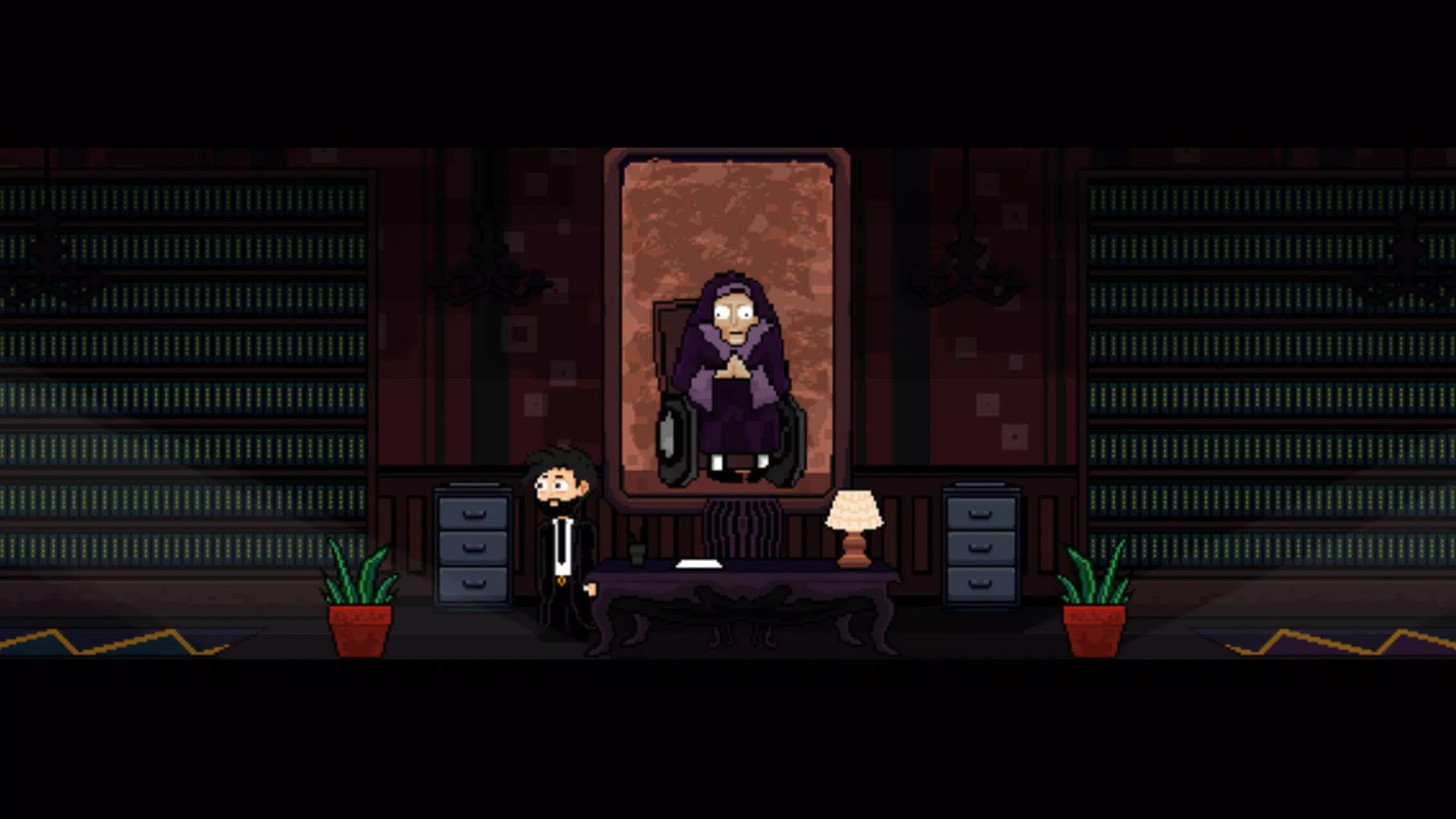 Dentures and Demons is a pixelated graphic adventure game where you play as Detective Junior Peexelated, solving the mystery of a dangerous sect and a series of murders in the eerie town of Varedze.