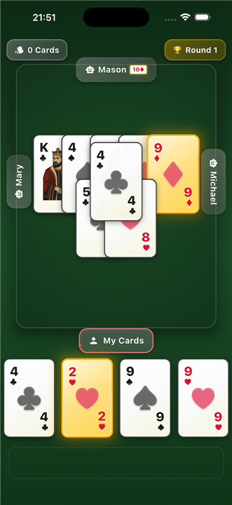 • The core objective is simple yet challenging: match the cards in your hand with those on the table to reach a total of 21, outthink the AI bots, and secure victory.