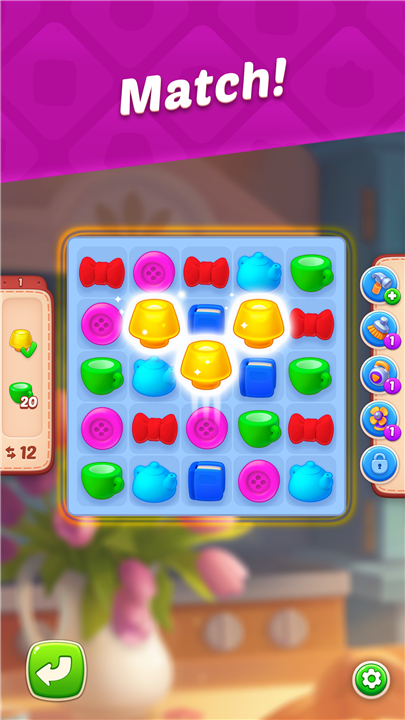 A: Swap adjacent pieces to match three or more of the same color. Complete the level’s objective (like collecting certain items or breaking obstacles) to earn stars for decorating.