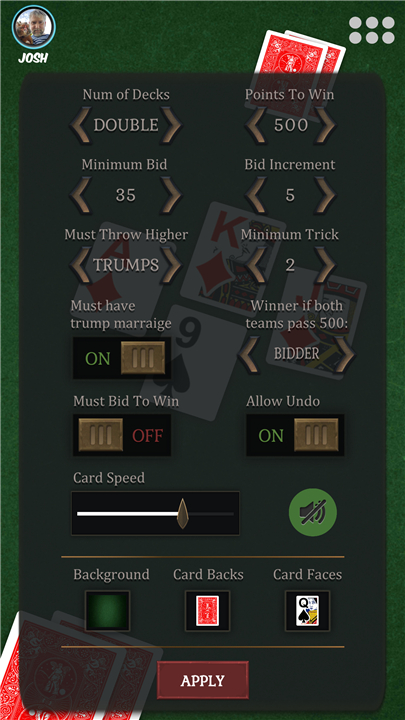 • Select from a range of card styles and backgrounds to make the game truly your own.