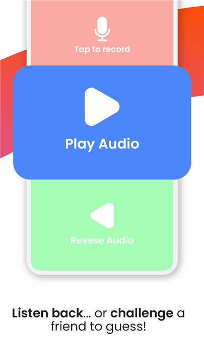 • Using the simple record-and-reverse feature, you can turn any phrase into a strange sequence of sounds that will leave everyone laughing.