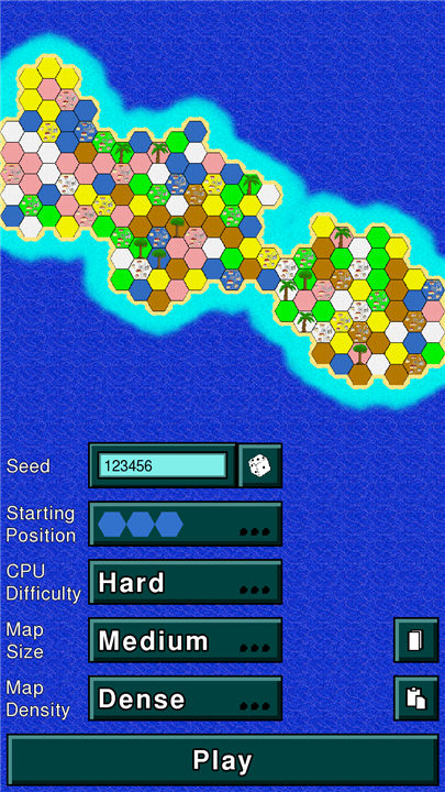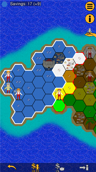 • Expand your kingdom gradually by capturing adjacent hexes, securing crucial resources, and defeating enemy lords who stand in your way.