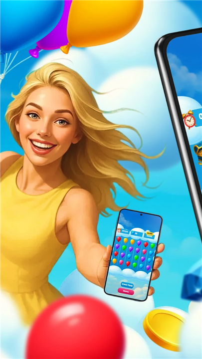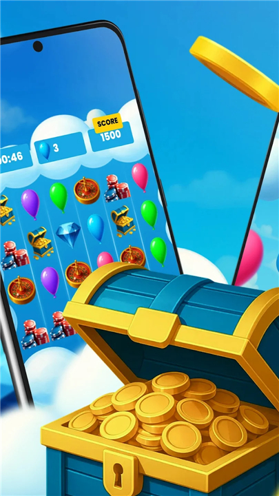 • The objective is simple yet addictive—swap balloons and other playful symbols to create lines of three or more identical items, clearing them from the board and earning points.