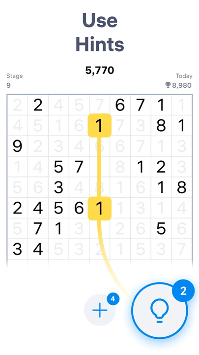 5. Extra Lines – Out of moves? Add remaining numbers to extra rows at the bottom.