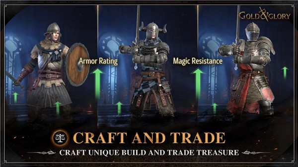 Customization doesn’t end with class selection—Gold and Glory also features a robust buildcraft and trading system. Players can trade loot with others or browse the in-game market for essential items that enhance their abilities.