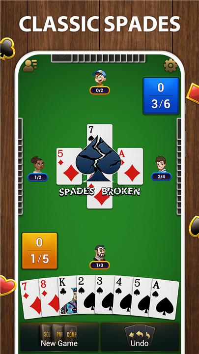 • Strategic Trick-Taking – Master the art of bidding, trumping, and winning tricks; spades always reign supreme.