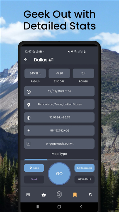 The app generates coordinates within a set radius, giving you the choice to adventure to the point or explore it digitally.