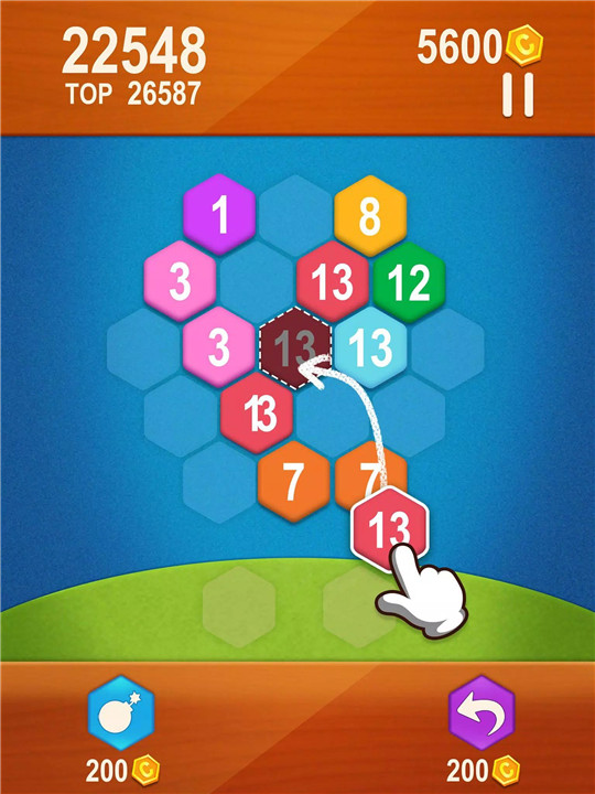 Merge three or more identical numbers on a hexagonal grid to create higher numbers, ultimately making the number 14 with the hexablocks. Simple, you say? Don’t speak too soon now. As you progress, the board fills up quickly, adding pressure to strategize your moves carefully. Combining numbers strategically not only advances your score but also unlocks combo merges that yield extra points, adding layers of depth to the gameplay.