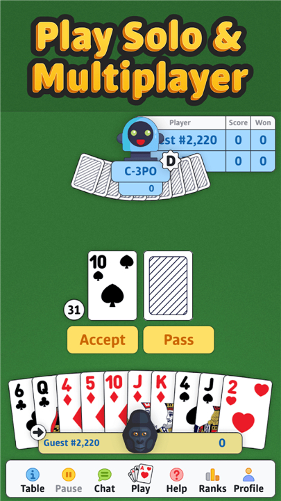 + Sharpen your skills against intelligent bots designed to challenge even the most experienced players.