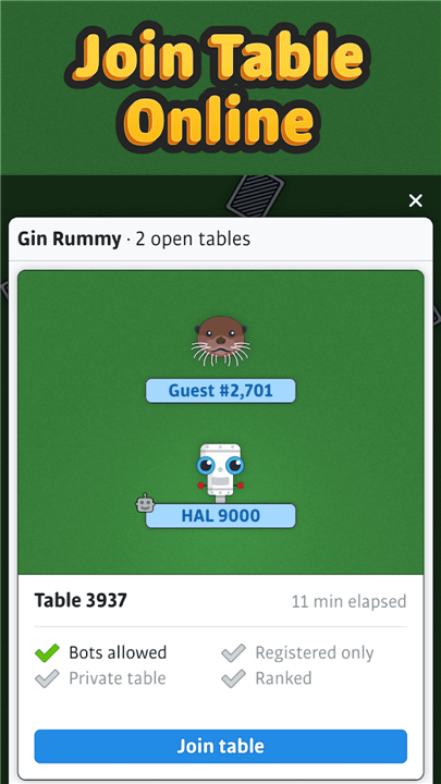 Play Gin Rummy online for free! Master this classic card game with ranked matches, smart bots, and a global community. Download the latest version of Gin Rummy ‣ to enjoy new features and updates immediately!