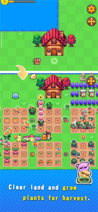 Cultivate Fields: Plant a variety of crops, from common vegetables to rare fruits. Nurture them and enjoy the process of watching them grow.
