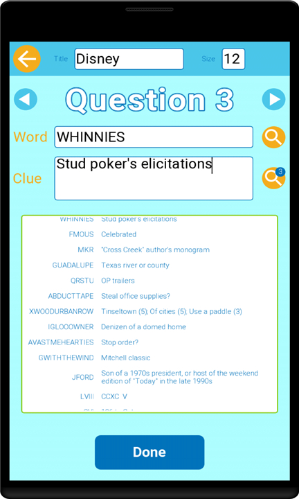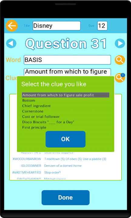 • Access a wide collection of clues drawn from professional crosswords and dictionaries.
