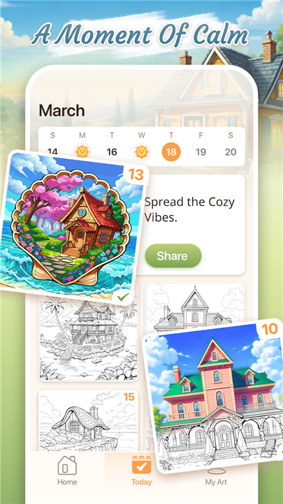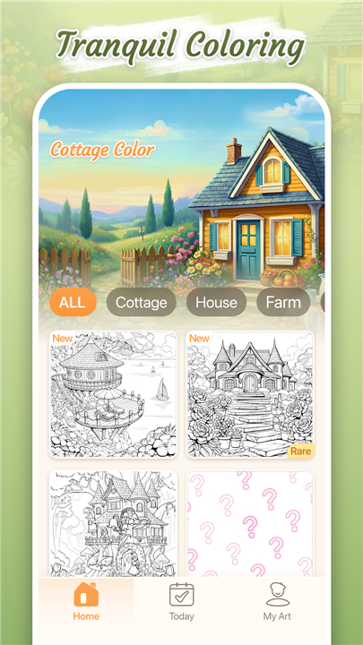 A: You can discover a vast and growing library filled with intricate illustrations of cozy houses, sun-drenched garden rooms, and enchanted interiors. Each canvas is a detailed window into a dreamlike world, inviting you to breathe life into diverse and charming scenes.