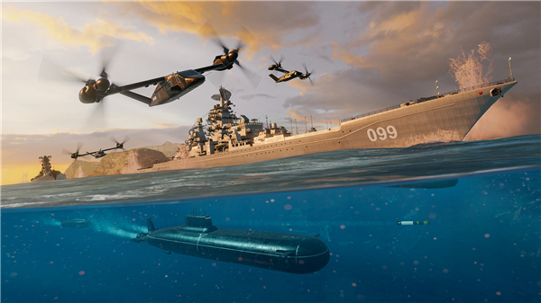 • Even take control of deck-based helicopters and fighter jets for aerial dominance!