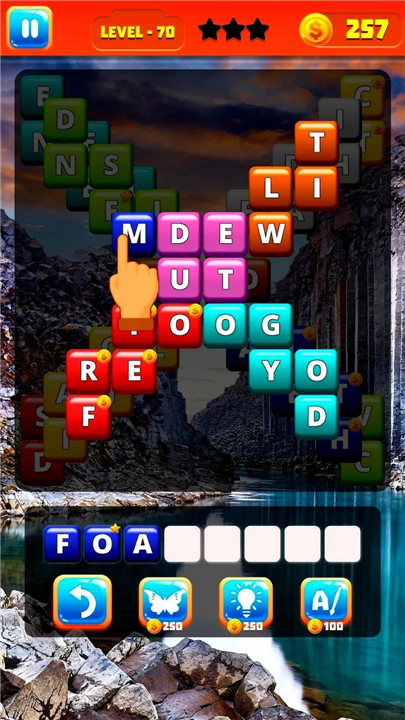 A: Unlike flat grids or linear word lists, Wordy’s letters are arranged in satisfying 3D stacks. This design adds an extra layer of strategy because you must uncover and clear stacks in the right order to reveal hidden letters and complete each puzzle.