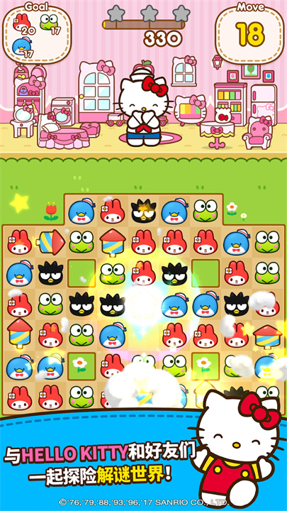 《凯蒂猫和好朋友们》是一款充满可爱气息的消除手游,带你进入三丽鸥角色的奇妙世界。在这里,凯蒂猫、美乐蒂、酷洛米等人气角色齐聚,与你一同畅玩。在游戏中,你需要匹配两个以上的好友方块,创建特殊方块,享受绚丽多彩的消除体验。收集各种服饰,装饰你的专属房间,还能通过合成系统结识新朋友。与凯蒂猫和朋友们一起,体验消除乐趣!