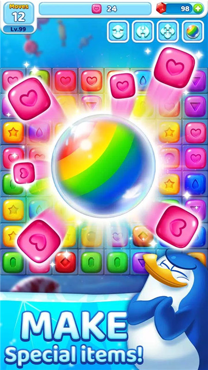Discover a range of special power-ups and boosters that can help you overcome obstacles and achieve high scores. Use them strategically to clear tiles, create combos, and rescue baby penguins trapped in ice blocks.