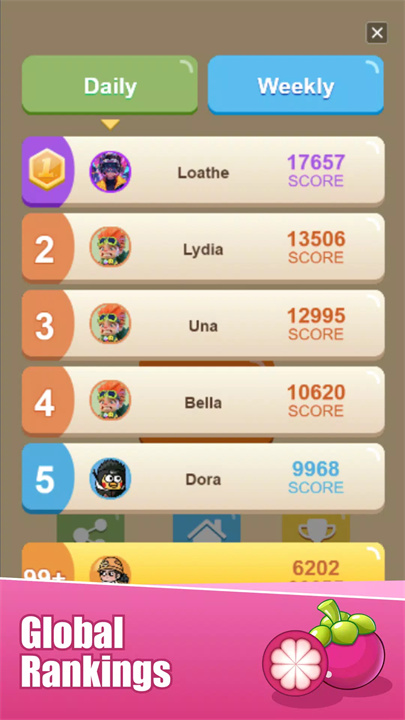 Climb the Leaderboard: Compete globally, aiming to merge the largest fruits and achieve the highest scores.