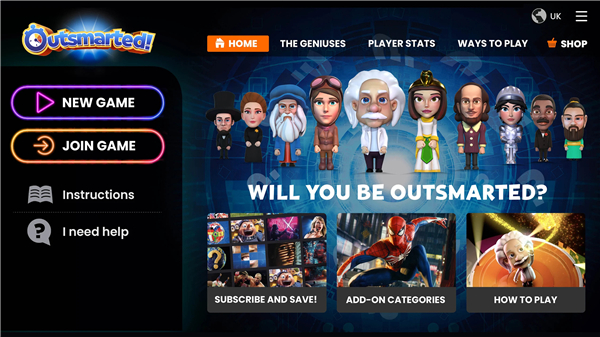 • Experience the high-stakes thrill of a televised quiz show from the comfort of your living room with Outsmarted!
