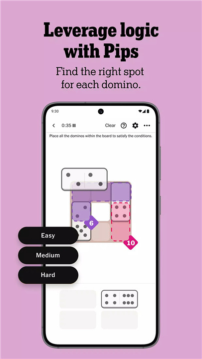 · Pips: A new domino-placement game with three daily puzzles to test your logic skills.