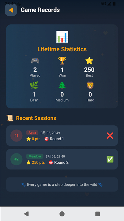 • Monitor your personal evolution through a detailed session log that tracks scores, reached rounds, and every milestone achieved.