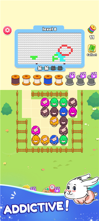 Rabbit Wool Puzzle-Jam & Match is a delightful casual puzzle game designed to immerse players in a whimsical and colorful world of yarn.